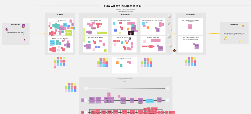 It’s not that we had any real beef with the traditional model of PvP hackathons; they just weren’t fit for our purpose. And so we dreamed up something new. The Futurethon was co-created in the RADAR community – over three collaborative workshops, 18 active contributors, hundreds of stickies, and quite literally countless 🥚emojis.